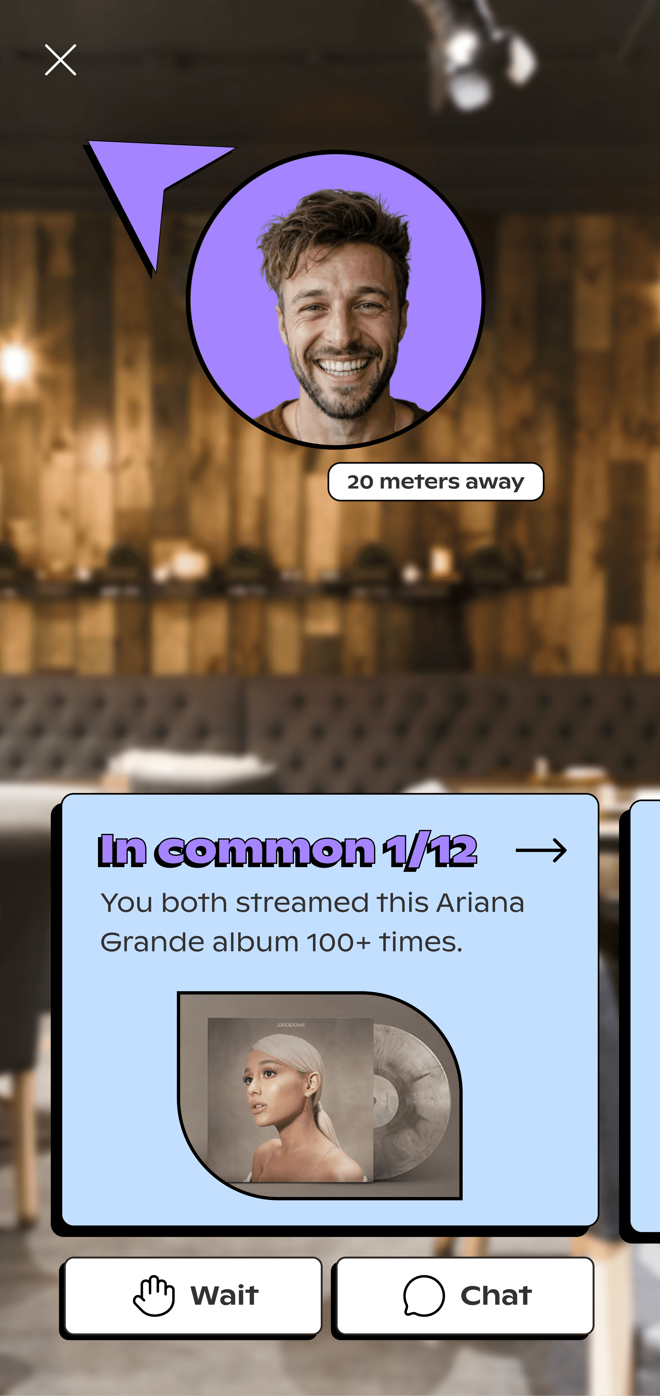 I simulated an in-app notification when two pre-matched participants were close by. The notification revealed a small shared fact (e.g., same favorite artist). This let me test how proximity + mutual interest + context affect people’s willingness to make a move.