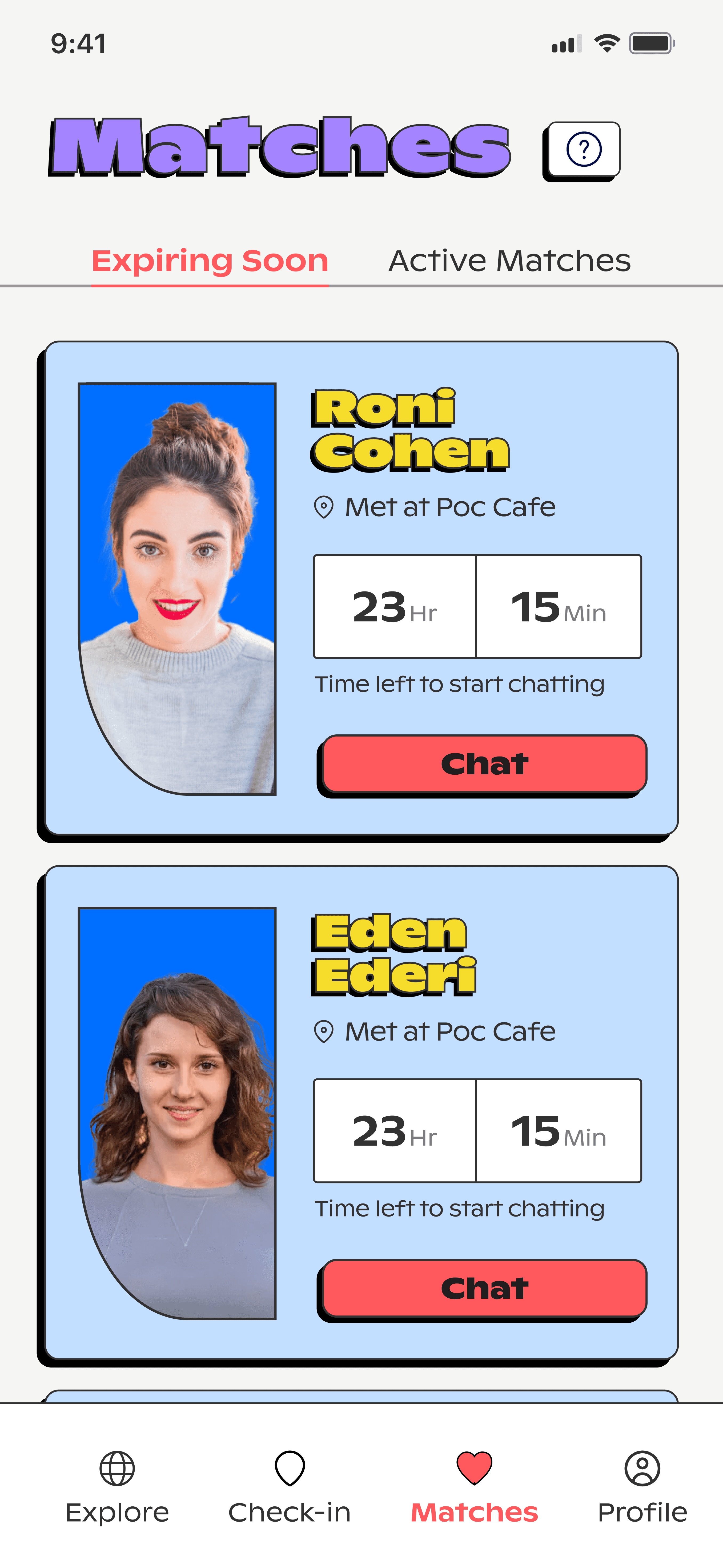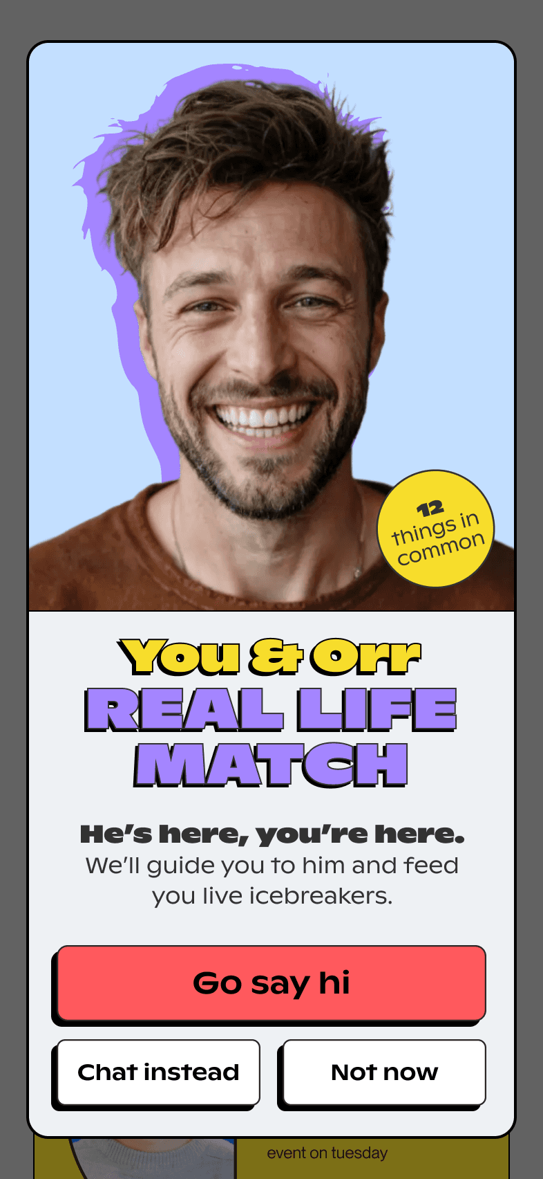 This flow turns what research showed as the most paralyzing moment—making the move—into a structured yet playful experience that lowers hesitation and makes meeting feel natural.