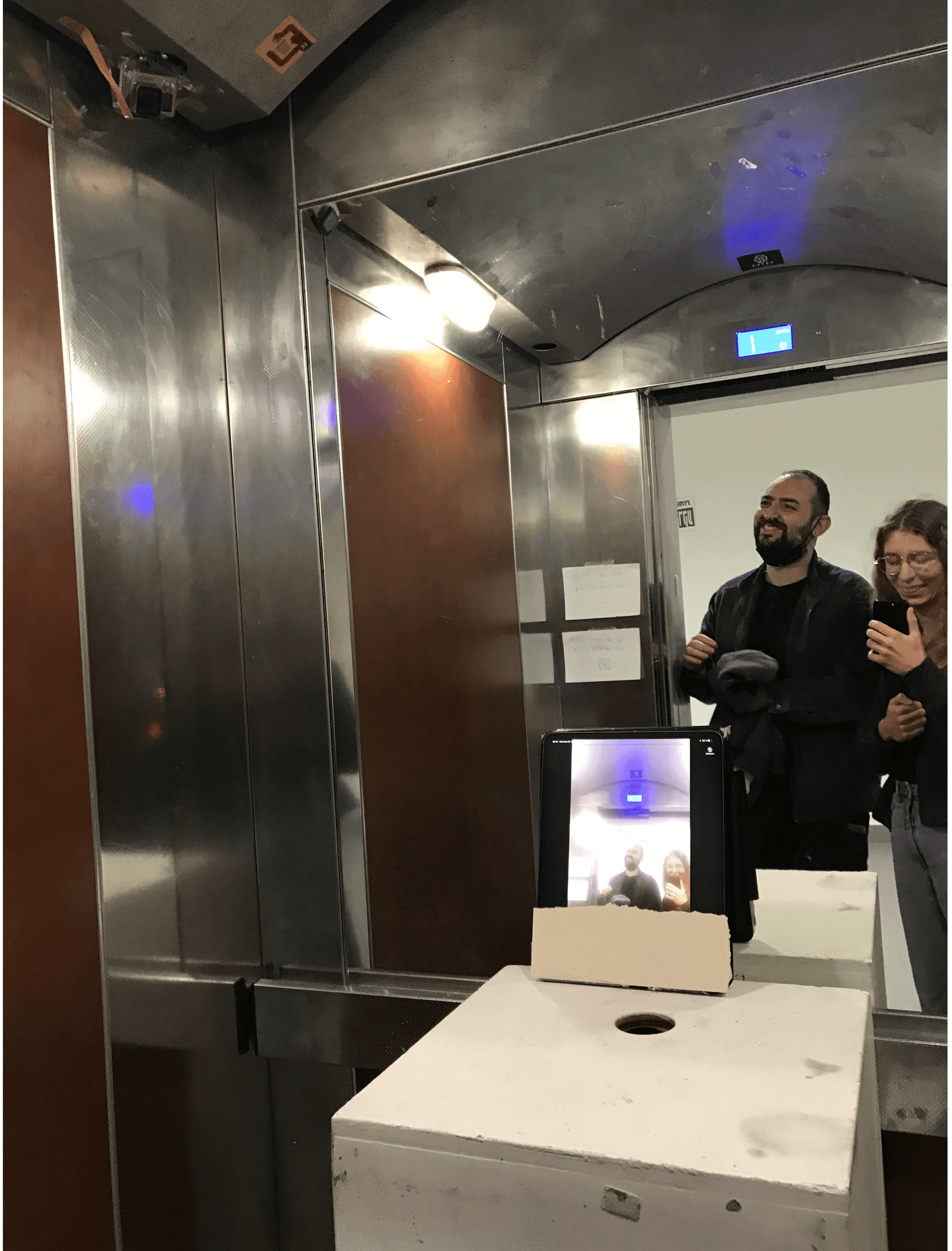 I turned an elevator into a small interactive game, using prompts and light tasks that passengers could respond to together. I wanted to see whether a playful digital layer in a tight, shared space could make strangers more comfortable acknowledging each other.